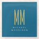 Ocean Blue Gold Monogram Initial Letters Name Glass Coaster