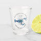 Personalized Blue Lobster themed shot glass souvenirs for your next Lobster Bake Party or seafood event. It features a watercolor styled illustration of a blue lobster. Surrounding this are spots for your unique event information.