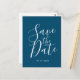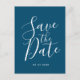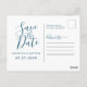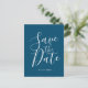 Ocean Blue Script Save The Date Wedding Postcard