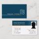 Ocean Blue White Simple with Monogram and Photo Business Card