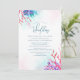 Ocean Coral Wedding Invitations, simple and elegant these wedding invitations are great for beach weddings, summer or spring weddings. Created with pink, purple and blue coral with a simple seashell accent. Customize this invitation with your wedding information, the back is set as white however you can change it to any colour that you prefer.