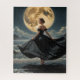 Ocean Dance Under the Moon Woman in Black Dress Jigsaw Puzzle