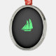 Ocean Glow_Green-on-Black Clipper Ship Metal Ornament