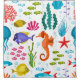 Cute colourful cartoon illustration of sea animals over custom/changeable white background. Part of bathroom collection.
