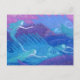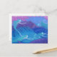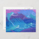 Postcard featuring nautical fairytale illustration, group of little mermaids accompanied by gigantic fishes wandering through the ocean. Pink, blue, turquoise, purple and violet colours.
