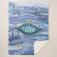 A contemporary coastal art design of stylized ocean waves and the word "love", could be interpreted as an illustration of a love of the ocean or a mystical ocean of love. This ink over watercolor effect sherpa blanket in shades of blue and aqua is a perfect addition to your home or beach house decor!