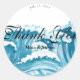 The Ocean Sea Waves Wedding Thank You Classic Round Sticker features a stunning design of rolling sea waves, perfect for adding a touch of coastal elegance and tranquillity to thank you notes and wedding favours.