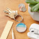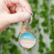 A clean, coastal design featuring vibrant turquoise water meeting soft sand in a smooth, natural shoreline. The balanced composition and deeper blue tones create a clear, readable space for custom names, dates, or meaningful text without distractions.