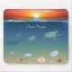 Ocean sunrise, swimming sea turtles and shells mouse pad