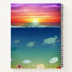 Ocean sunrise, swimming sea turtles, shells and pearls Notebook. Text can be personalized.