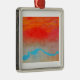 An abstract design of an ocean sunset with bold colours in red, orange, cyan, blue, and beige.