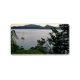 Ship in the ocean surrounded by trees and mountain at the sunset