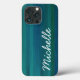 Ocean Teal Blue Green & White Custom Cursive Name Case-Mate iPhone Case