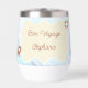 Two lines of customizable text highlight this ocean-themed thermal wine tumbler featuring a single crab, a life preserver and a note in a floating bottle.