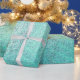 Ocean Tiffany Aqua Paint Stripes Linen Metallic Wrapping Paper