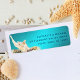 De beaux coquillages sur le sable blanc se détachent de l'arrière - plan d'aqua bleu turquoise turquoise sur ces étiquettes d'adresse de retour mariages.