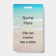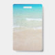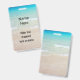 Ocean water and beach scene custom badge with two places for text. Include a name and more text beneath, or go into the customize area and change whatever you need to. Reverse has the same image without text.
