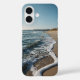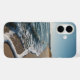 Gentle ocean waves rolling onto a sandy beach under a clear sky. A calming summer design for phone cases.