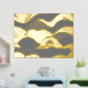 Ocean Waves Gold Foil With a Dark Grey Background Foil Prints