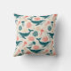 This stunning personalized throw pillow features hand-illustrated humpback whales, graceful jellyfish, and intricate coral reefs in a beautiful palette of teal, coral pink, and sandy beige set against a warm cream background.