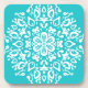 This white mandala sits on a turquoise background. The colours are very calming and peaceful. Part of the Pras Mandala Collection.