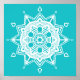 This white mandala sits on a turquoise background. The colours are very calming and peaceful. Part of the Fenten Mandala Collection.