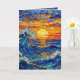 A birthday card that can be personalized with an illustration of a stained glass mosaic ocean waves and sunset illustration. Inside is a poem about the ocean and birthdays meaning.