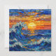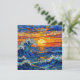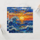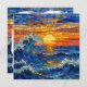 A blank card with an illustration of a stained glass mosaic ocean waves and sunset illustration.
