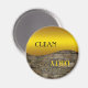 Clean-dirty dishwasher magnet featuring a gold ocher design on a sturdy brick background image.