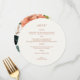Ce modèle de carte circulaire propose un ensemble de polices contemporaines en ocre, contre un arrière - plan chic en ivoire. Le dos de la carte comprend un affichage floral coloré, ainsi que des noms de couple et la date de l'événement.