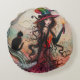 October Flame Halloween Witch and Black Cat Art Round Pillow
