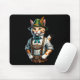 October Party Cat Funny German Bavarian Lederhosen Mouse Pad