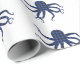 Wrapping Paper with an octopus pattern in a buffalo plaid (blue black) pattern on a white background.