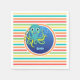 Cool, cute kids ocean, sea life, theme design with green and yellow octopus on colourful red, orange, yellow, green, blue, white rainbow stripes pattern.