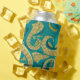 Teal and Gold Octopus Can Coolers or Bottle Coolers - MIGNED Art Painting