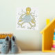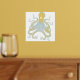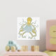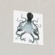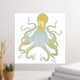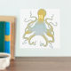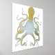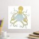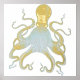 Chic foil print, with a gold foil and aqua octopus, on a white background.