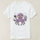 A cheerful octopus mascot wearing glasses and holding a camera, notepad, speech bubble, and magnifying glass in its tentacles. The design promotes visual interpreting and disability inclusion with a fun and accessible style, perfect for an equity and access fashion statement. for shirts.