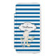 Bright blue and white horizontal stripe phone wallet with a cute octopus and a white banner you can easily customize with your name!
