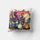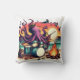 Octopus Playing Drums By The Beach At Sunset Throw Pillow