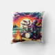 Octopus Playing Drums by the Ocean at Sunset Throw Pillow