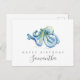 A watercolor Birthday greeting postcard sending love and wishes from a far! This simple design features my original hand painted watercolor blue octopus with "Happy Birthday" in a modern typography and the recipient's name in hand lettered script typography. Use the template fields to add your custom information and personalized greeting. A nautical yet sophisticated choice for Birthday wishes. Designed by Victoria. To see more beach style octopus postcards visit www.zazzle.com/vginvites