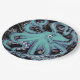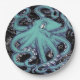 Octopus Teal vintage map Ink Paper Plate