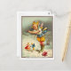 This postcard features a vintage illustration from the Victorian era showing a jester with puppets and wishing the recipient a merry Christmas and happy new year.