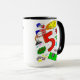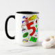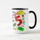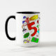 A design dedicated to the number 5! Ode to Five is inspired by the drawings junior high and high school students doodle on their notebooks and binders with pen and marker - and themed around the number 5! A big 5, a five dollar bill, a nickel, Beethoven's 5th, a hand, the French and Spanish words for 5, 5-card stud poker hand, and even James Madison - America's fifth president - all decorate this unique mug. So celebrate the number 5 with this spectacularly fun design! Design was hand-sketched in pencil and pen and digitally coloured with marker-pen. Original design by Sunny. Copyright 2012