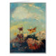 Beautiful artistic vintage French symbolist painting featuring several colourful abstract butterflies, flowers and rocks against a cloudy blue sky.