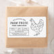 Vintage Farm Fresh Eggs design Étiquette en noir et blanc, polices de style rustique et illustration de poulet dessinée à la main. Créez des étiquettes professionnels pour des oeufs frais, de la viande de volaille ou tout autre produit connexe à l'aide de ce étiquette modèle modifiable. Utilisez cet autocollant sur les cartons d'oeufs, les boîtes ou tout autre emballage.