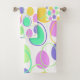 Ce kit de serviettes a un design Pâques d'oeufs en violet, jaune, vert, bleu et rose parsemés de leurs contours.