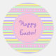 Autocollant rond à l'image de rose pastel violet, lavande, vert, jaune et blanc avec rayures rose entrelacées avec des oeufs de Pâques solides et rayés, et un cercle rose avec une bordure périvent et un sentiment de vacances personnalisable. Voir les confettis assortis, le étiquette et le papier d'emballage. Voir la collection entière de Sticker de Pâques sous la catégorie CARDS & STICKERS dans la section VACANCES.