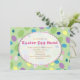Invitation votre famille et vos amis à votre fête de chasse aux oeufs de Pâques avec ces invitations de fête de Pâques mignonnes avec des oeufs colorés arrière - plan avec les détails de la fête écrite dans un cadre en forme d'oeuf. Vous avez la possibilité de déplacer les éléments de conception et de modifier le libellé/la police/la couleur pour adapter également votre style.