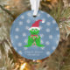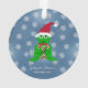 Cute grenouille de Noël tenant des sucres de canne et portant un chapeau de santa, entourée de flocons de neige. Ajoutez un nom et un court message à l'avant et à l'arrière.